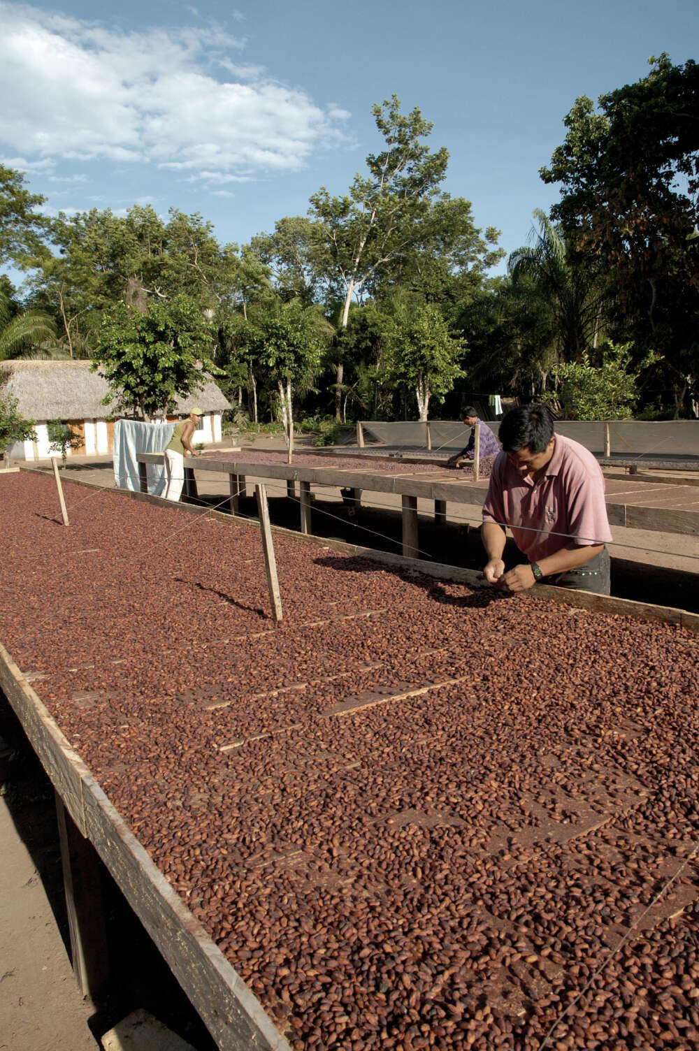 Nach abgeschlossener Gärung leert der Bauer die Holzkisten und verteilt die Bohnen in der Sonne zum Trocknen. Fünf bis zehn Tage später ist der natürliche Trocknungsvorgang abgeschlossen. Danach erfolgt eine Schnittprobe: Die Bohnen werden aufgeschnitten und auf ihre Feuchtigkeit geprüft. Um eine spätere Schimmelbildung zu verhindern, darf die Feuchtigkeit der Bohnen 6 % nicht überschreiten.