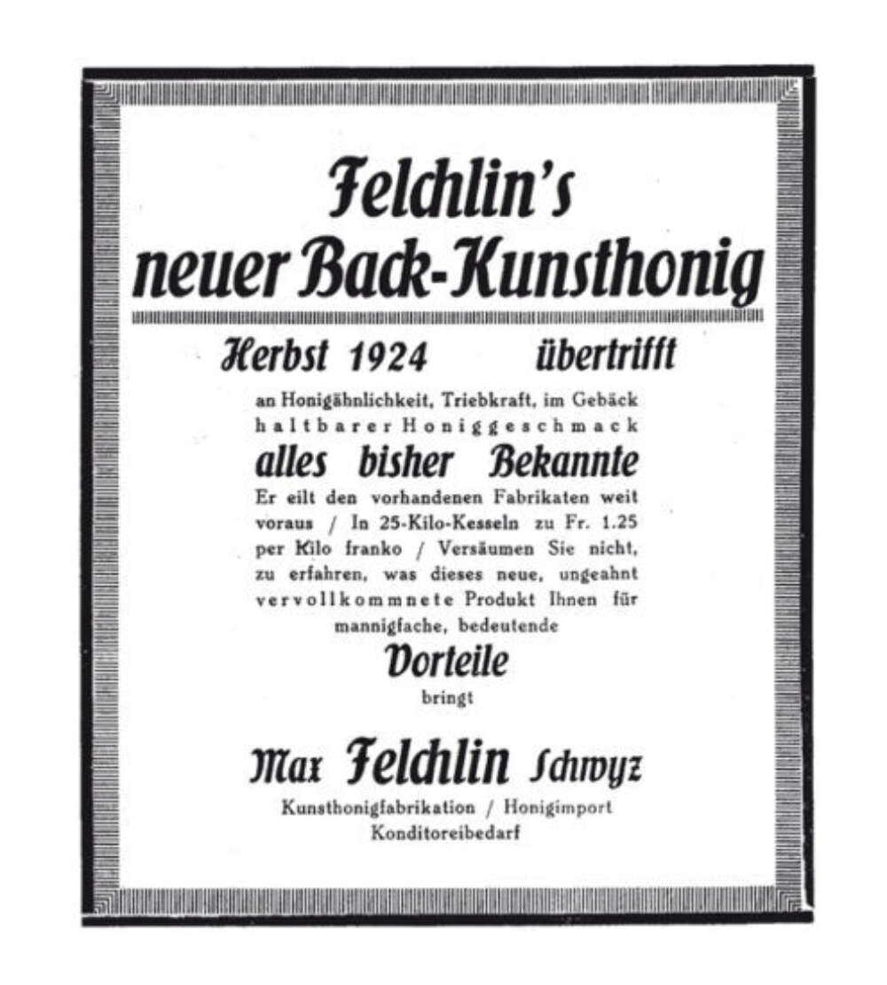 The first article that Max Felchlin produced himself was «Herbst 1924» (Autumn), an artificial Swiss honey based on herbs that set itself apart from its international competitors through its superior quality. More than 100 years later, this product is still part of Felchlin’s product range.
