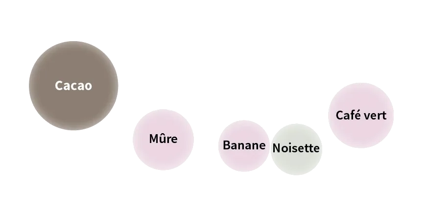 Un cacao équilibré et fruité qui dégage un léger arôme de noisettes grillées et séduit par sa fraîche note de baies des bois. Grâce au procédé de fabrication traditionnel, tout en douceur, il exhale harmonieusement, lors de son long départ en bouche, un soupçon de girofle et de bois de cèdre.